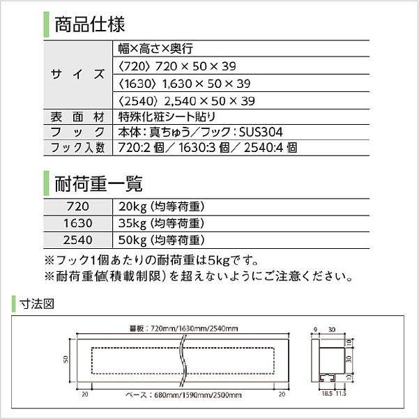 サイズ(幅W×高さH×厚みt/単位mm)+フック数